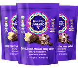 Double the dark, double the yum! Our 100% Organic Double Dark Chocolate Honey Patties are a blend of velvety, white honey and dark chocolate,
